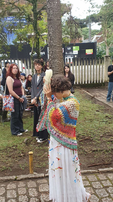 "Crochê é incorporação mútua. Incorporação da linha sobre nosso corpo, e do nosso corpo sobre a linha. Ele incorpora quem o faz e quem o vê. Incorpora o vento, as palavras, a chuva, o sol, a grama, a mesa, a agulha, tudo. Além de mim, quero levar essa incorporação a outros corpos, outras gentes, outras concepções. Ele permite ter contato com uma dimensão importante de nossas vidas e ancestralidades, nossas forças. É essencial trazer isso para perto, ainda mais com tudo que estamos passando hoje."